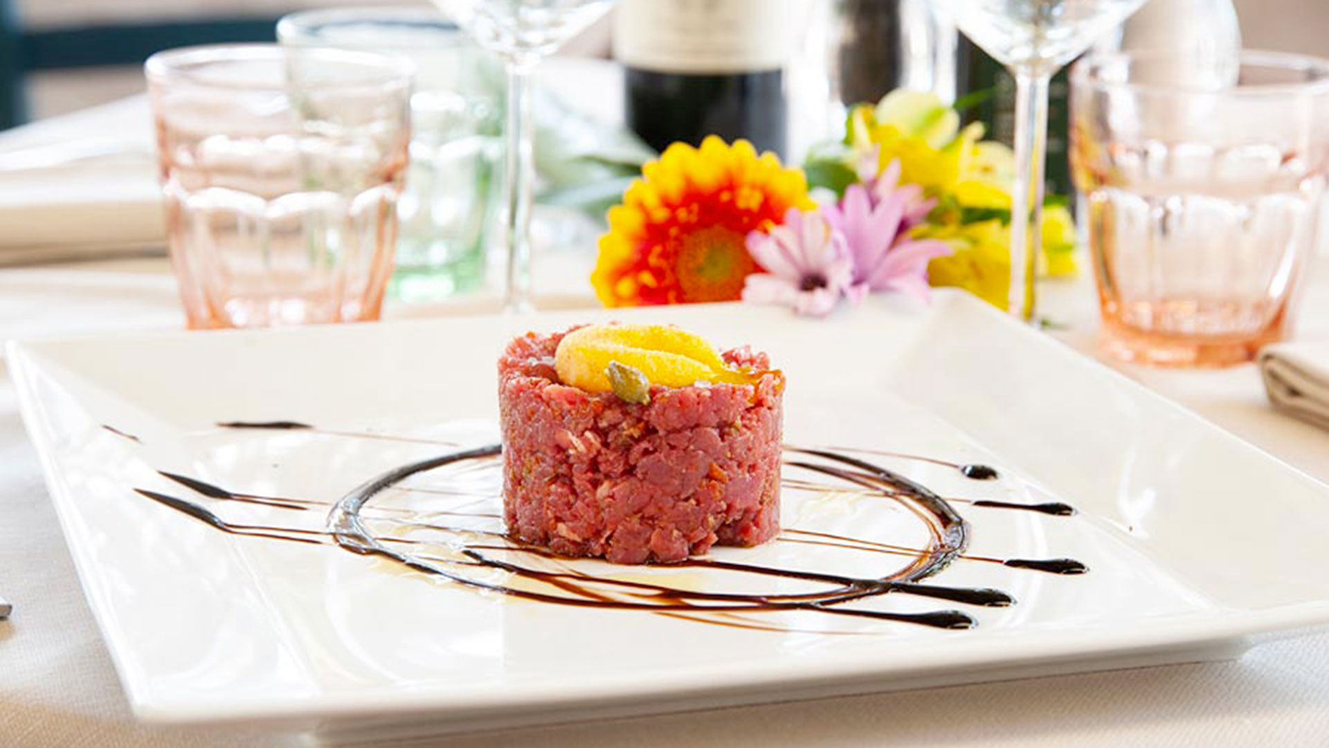 Per placare un languorino o per brindare alla vacanza, il ristorante Chalet ha menù per tutti i gusti. Qui si delizia anche chi sceglie la mezza pensione.